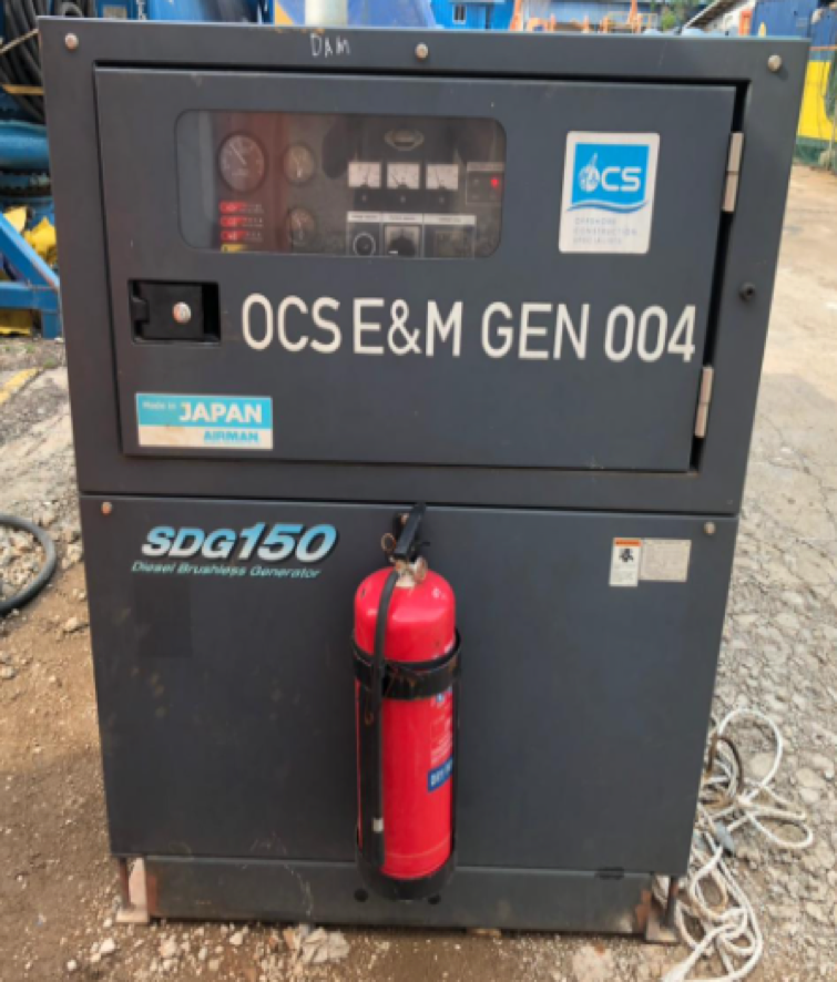 Engineered for durability and efficiency, the SDG 150S-3A6 has a net dry mass of 2180 kg and an operating mass of 2430 kg, housed within a robust frame measuring 2990 x 1180 x 1480 mm. Its compact yet heavy-duty build ensures stability during operations while remaining manageable for mobilization and site integration. As part of OCS’s equipment spread, this generator plays a key role in providing dependable primary or backup power to support continuous operations in challenging offshore conditions.