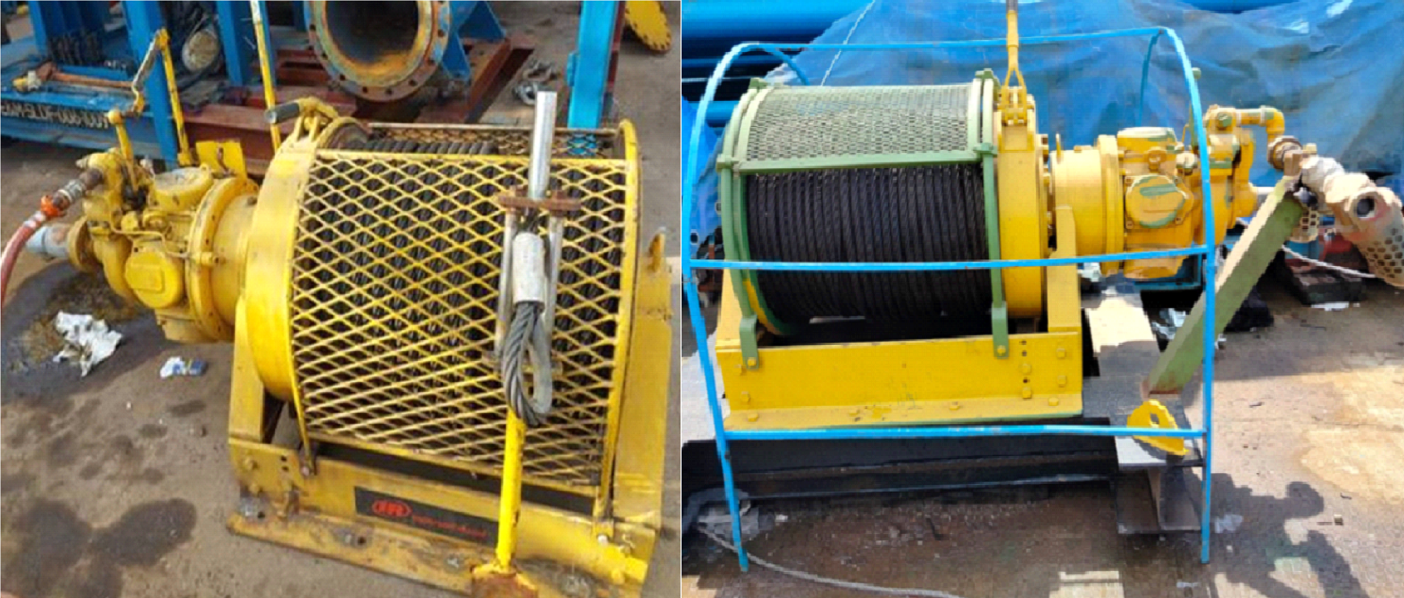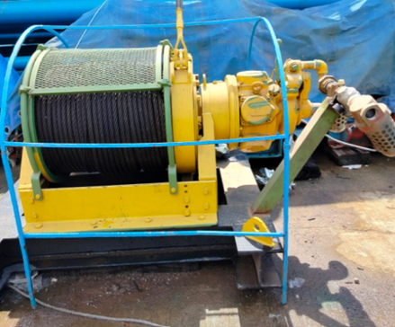 Operating efficiently on 90 psi air pressure and approximately 700 scfm air consumption, the winch is engineered for continuous reliability even in challenging offshore environments. Its 24-inch drum can store up to 1,138 ft (347 m) of ¾″ rope, providing ample reach for down-rigger or pull-in applications. Weighing around 2,260 lb (1,025 kg) without rope, this winch is purpose-built to offer high force, precise control, and durability—perfect for OCS’s marine deployment across trenching, deployment, and subsea installation tasks