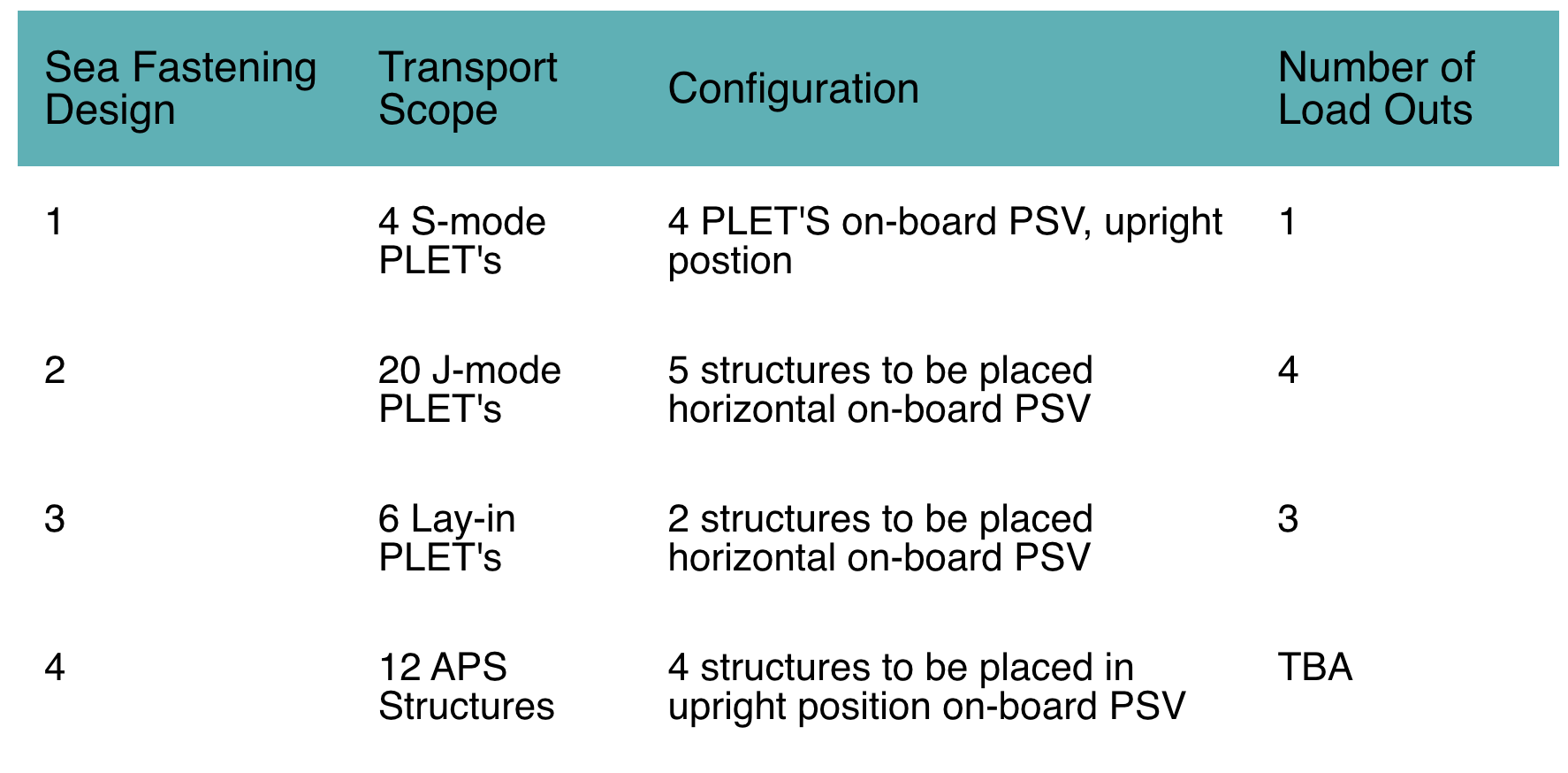 Allseas Construction Contractors S.A contracted OCS for perform grillage and seafastening design for the transportation of the PLEMs and PLETs for their Gorgon Jansz Offshore Pipelay project.