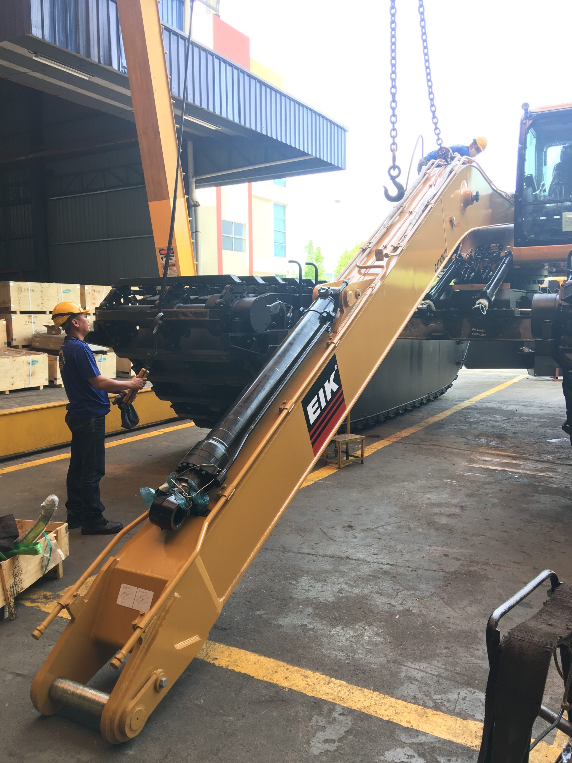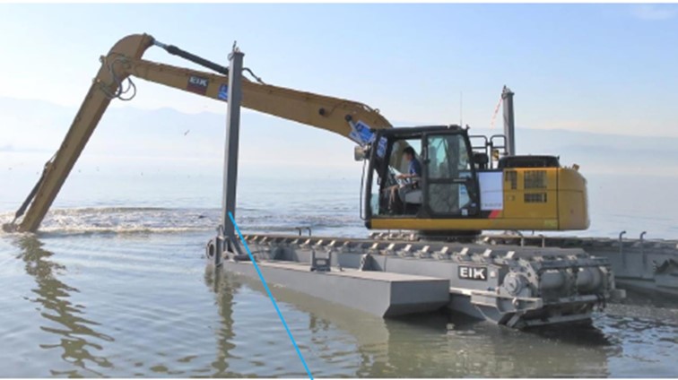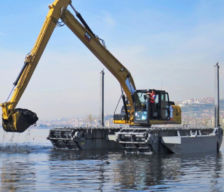 For added versatility, the unit can be equipped with side pontoons and a hydraulic spud system to increase floatation and stability—making it especially effective for trenching works in tidal zones and swampy areas.