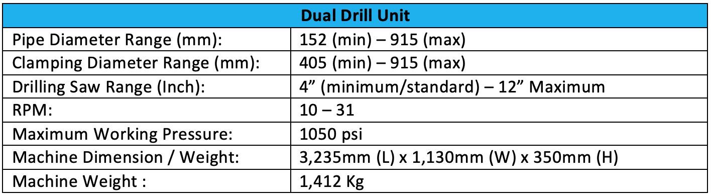 The Dual Drill Unit is a specialized subsea cutting tool used primarily for decommissioning of conductor pipes, casing strings, or piles. It features two independent hydraulic drill heads mounted on a frame that allows simultaneous or sequential drilling operations around the circumference of the target structure.