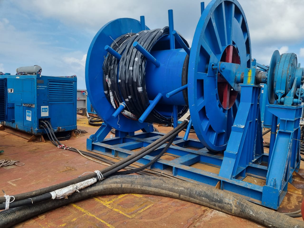 The reel on this spooler has been designed for high pressure umbilical that need appropriate diameter of center shaft to keep the umbilical spooled around the reel while the operation require high pressure to run the system.